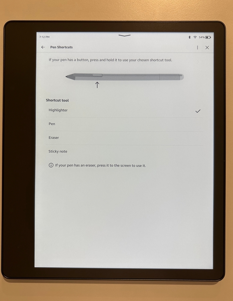 - 프리미엄 펜의 지우개 부분은 똑같은 플라스틱으로 되어 있습니다. 그리고 지울 때 그 플라스틱이 어느정도 눌려져야 지워지는 기능이 작동합니다. 어느정도 힘을 가해야 합니다. 그러다보니 화면에 스크래치를 걱정하지 않을 수 없습니다. 저 같은 경우 필름을 추가로 구매할 수 밖에 없었습니다. 꼭 지우개 기능이 아니더라도 펜을 오래 쓰다보면 스크래치가 날 수 밖에 없을 것 같습니다. 화면의 지우개 툴을 선택하여 지울 수도 있으나, 그렇다면 프리미엄 펜을 구매할 이유가 없겠죠. - 킨들 북에서의 메모 활용이 불편