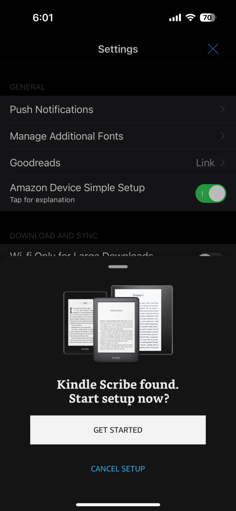 킨들앱에서 'Amazon Device Simple Setup'를 활성화하면 더 쉽게 설정할 수 있습니다.